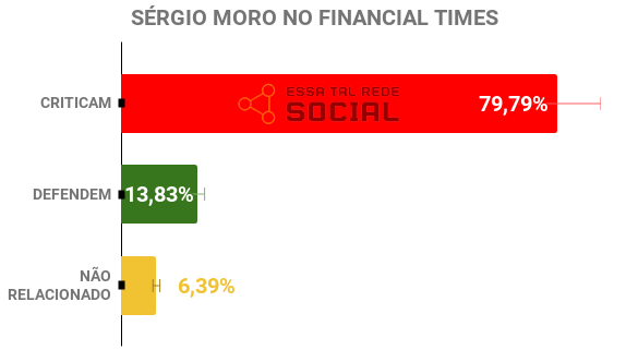 Conforme observado no gráfico acima, 79,79% dos usuários criticaram o ex-juiz após a entrevista para o jornal Financial Times, enquanto apenas 13,83% dos usuários se mostraram dispostos a, de alguma forma, tentar defender o ex-ministro.