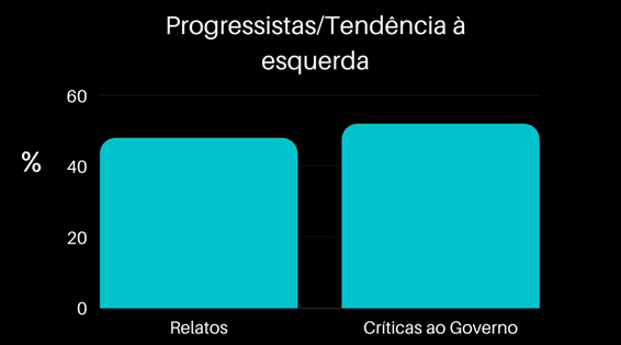 Progressistas: Nesse agrupamento, a orientação política dos usuários é evidente. Assim, críticas ao governo Bolsonaro e ao Ministério do Meio Ambiente são predominantes. Elas foram acentuadas após cortes de investimento na área ambiental, como redução de verba para controle de queimadas e desmatamento, além de um vídeo em que o Presidente debocha sobre os incêndios na região. Relatos dos impactos do fogo também são significativos aqui.