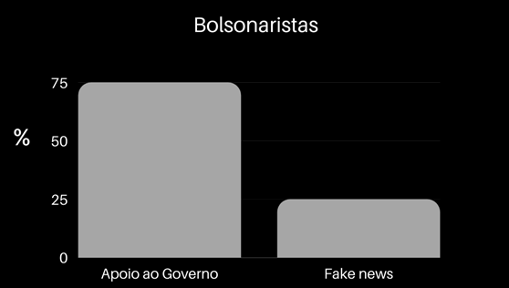 Bolsonaristas: Com apenas 1% das ocorrências, defensores do governo ressaltam o uso das forças armadas para o combate aos incêndios. Todavia, é importante destacar a disseminação da Fake News sobre o assunto, como vídeos que culpam ONGs ambientalistas por promoverem queimadas na região.