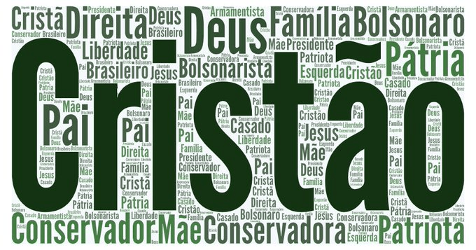 Um agrupamento específico (14% dos usuários) tenta difamar o petista que foi assassinado por um bolsonarista no Paraná. Frases como “um a menos” e “era bandido” ganham espaço. Como esses usuários se descrevem em suas bios do Twitter? Cristão, Deus, Família, Pátria e Bolsonaro.