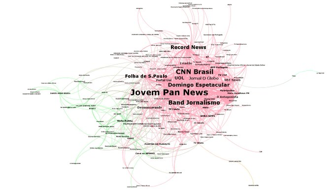 Assim como Peter Parker é o único que consegue fotografar o Homem-Aranha de perto, a Jovem Pan foi a única que acompanhou os terroristas de perto durante os ataques em Brasília. No grafo abaixo, formado a partir dos 500+ vídeos no Youtube sobre o tema, o portal é destaque.