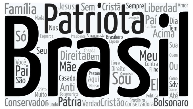 Esse cluster representa ainda 18% das conexões que negam a realidade e ofendem esses povos. A bios dos próprios usuários não deixa dúvida: se identificam como PATRIOTAS, CRISTÃOS, FAMÍLIA, PÁTRIA, MÃE, DIREITA, JESUS, CONSERVADORES, ARMAMENTISTAS…